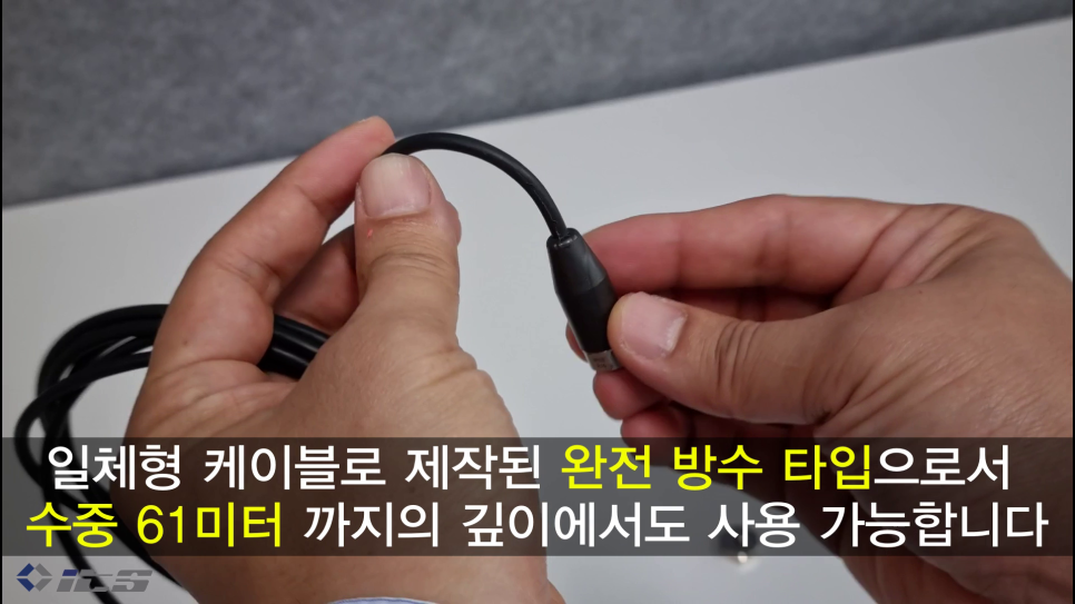 일체형 케이블로 제작되었기 때문에 수중 61미터 물속(완전 방수)에서 사용가능 합니다.