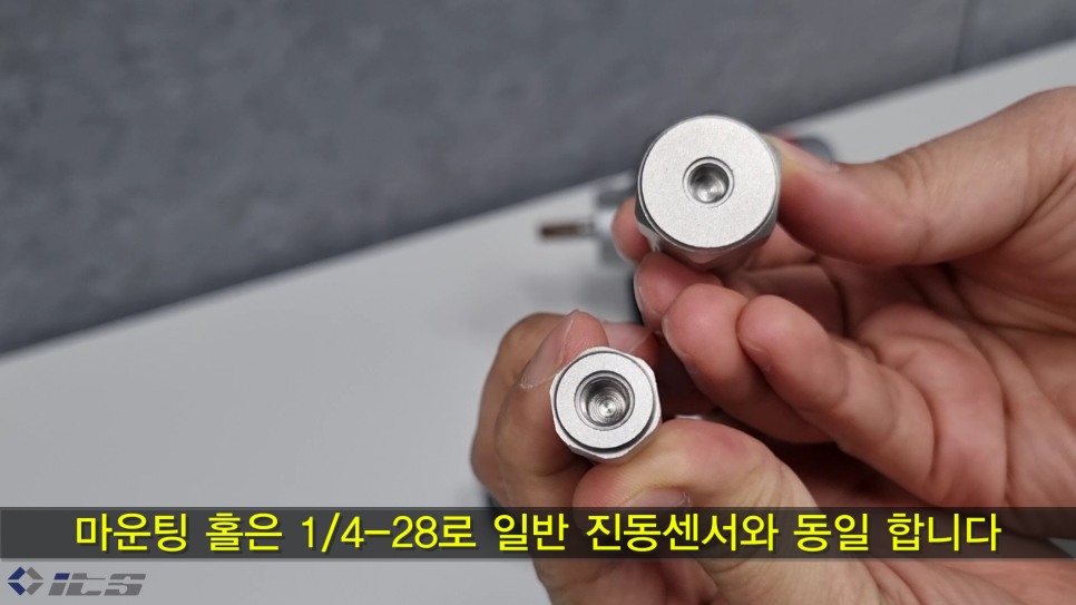 밑에 있는 마운팅 홀 규격은 일반 크기의 진동센서와 동일한 1/4-28 마운팅 홀 규격 입니다.